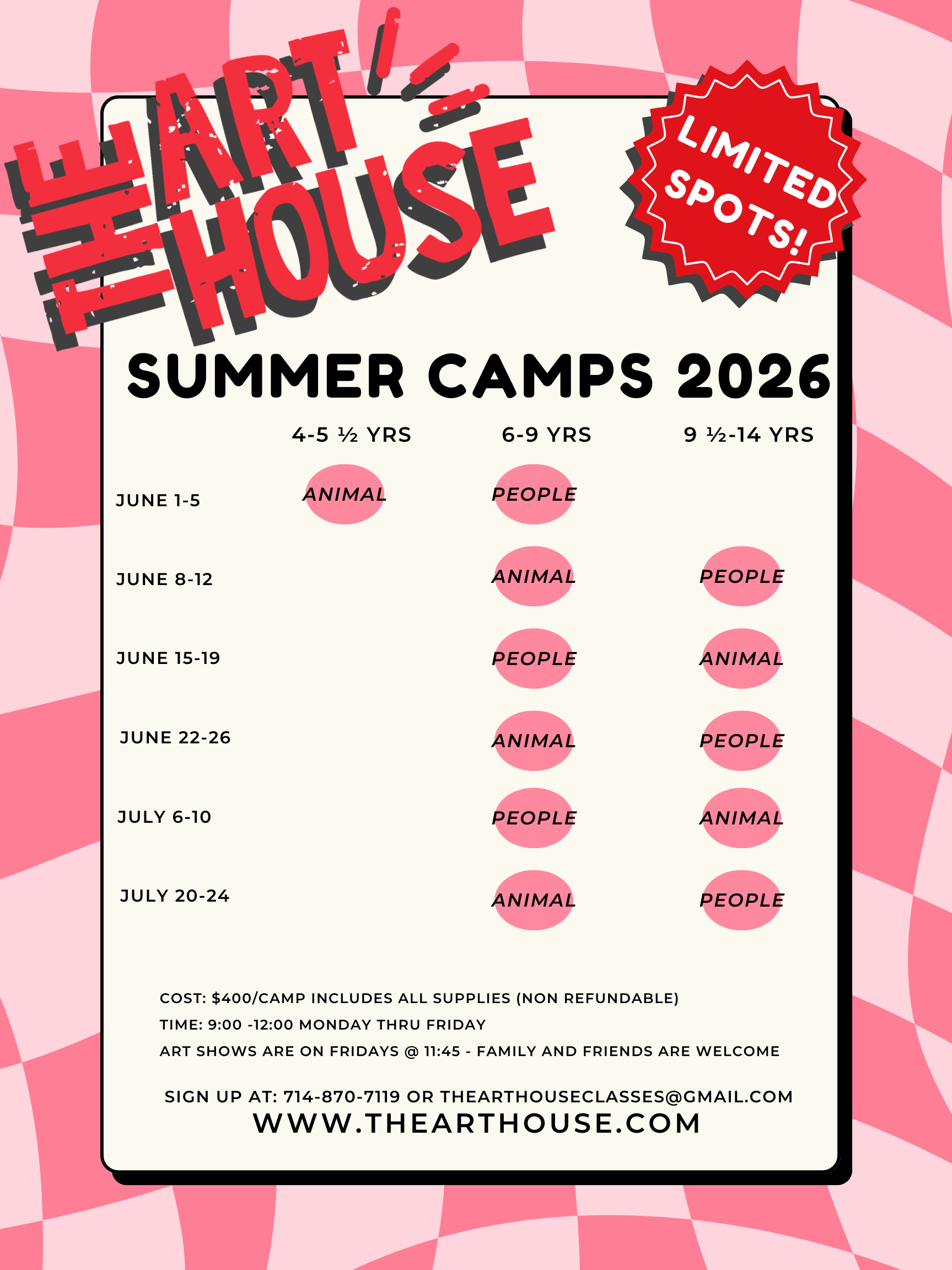 SUMMER CAMPS AVAILABLE NOW! 🖌️